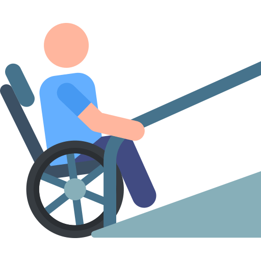 • Provide curbs, walls, railings, or projecting surfaces to prevent wheelchair slip-off.